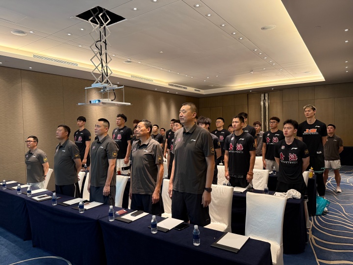 上海官方发布微博晒出球队上下一起观看阅兵仪式的照片并写道:“#九三盛大阅兵# ,致敬胜利🇨🇳