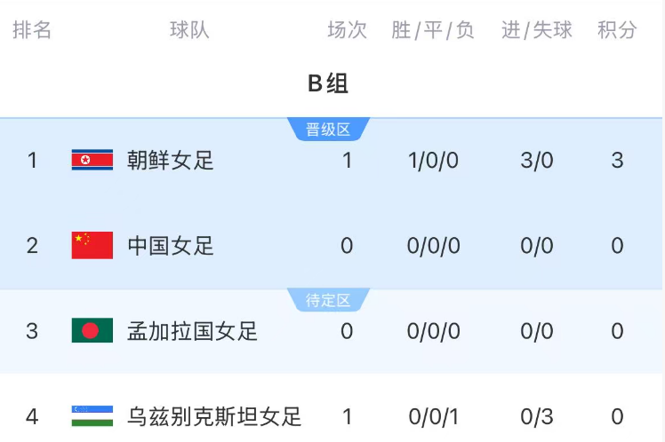 因为稍晚时候的16点00分,中国女足将与孟加拉国女足迎来第二场比赛。按照排名规则,中国女足只需赢4-0,即可反超朝鲜女足,升到第一名。